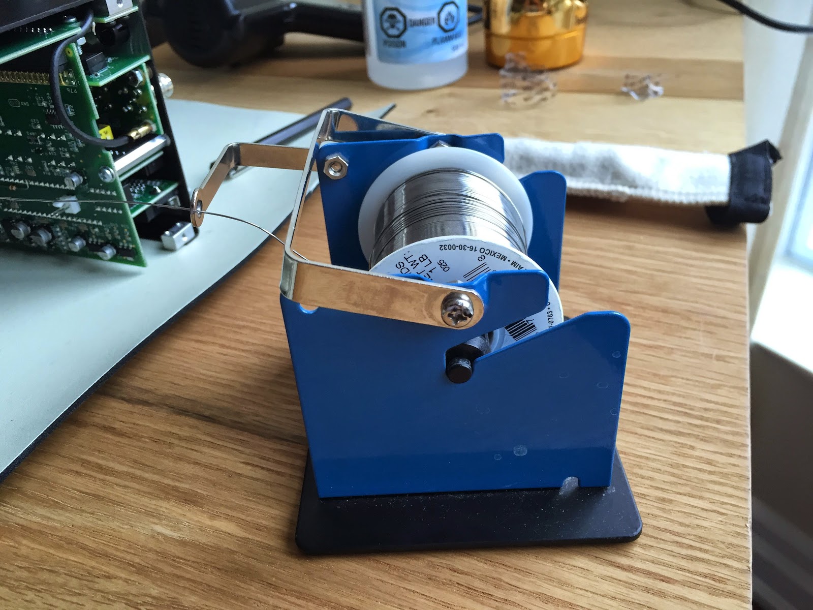 A soldering station would not be complete without some solder. I have in the past built the Elecraft KX1, 2 Elecraft K2's and at least 25 or more other projects having to do with ham radio. The solder I use is what's called SN63PB37. So what does this mean..........it's make up is 63% tin and 37% lead. This solder flows well and does not take real high temps to get it flowing. For the job at hand with my K3 I am using a diameter of .020. Also a good idea is to get a nice solder stand. The one I have was reasonably priced and allows me too gently pull and I have enough solder. I am not fighting with tangled solder or solder that keeps